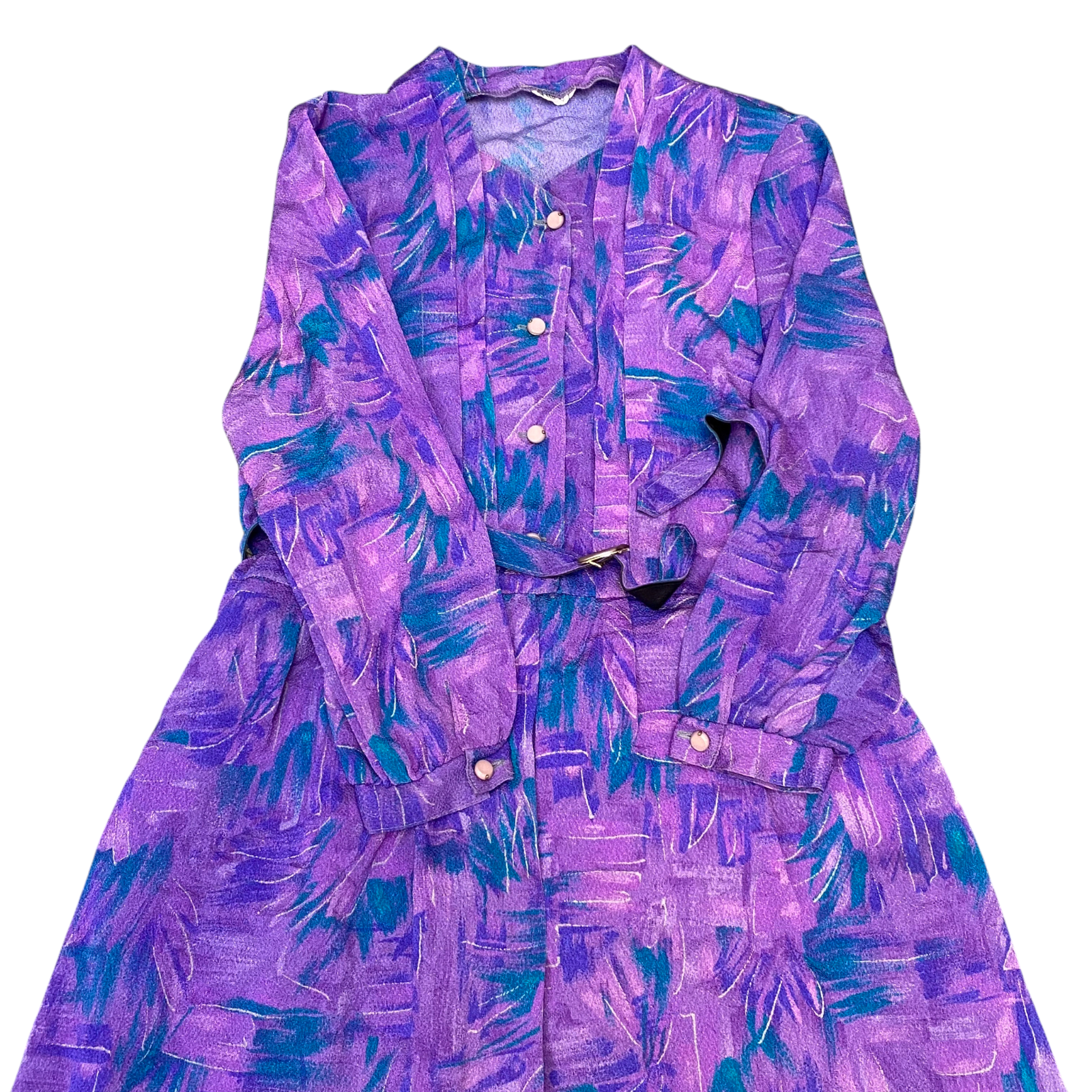 Womens Midi Dress M Pink Blue Floral Long Sleeve V Neck Button Front Outdoor