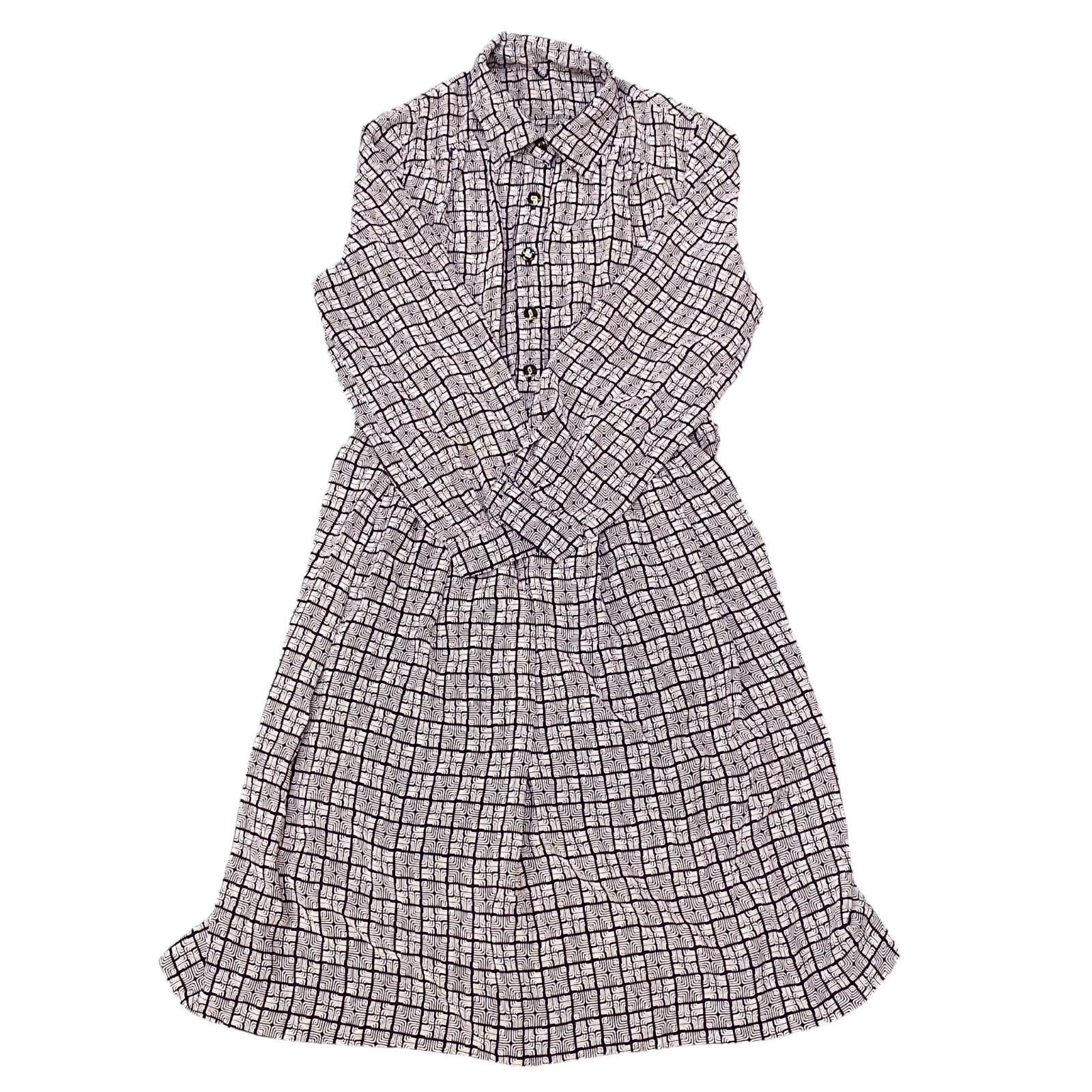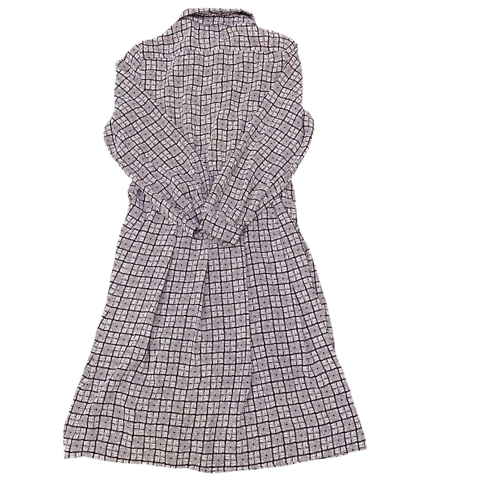 Womens Midi Dress Womens M White Black Geometric Long Sleeve Pleated Button Up