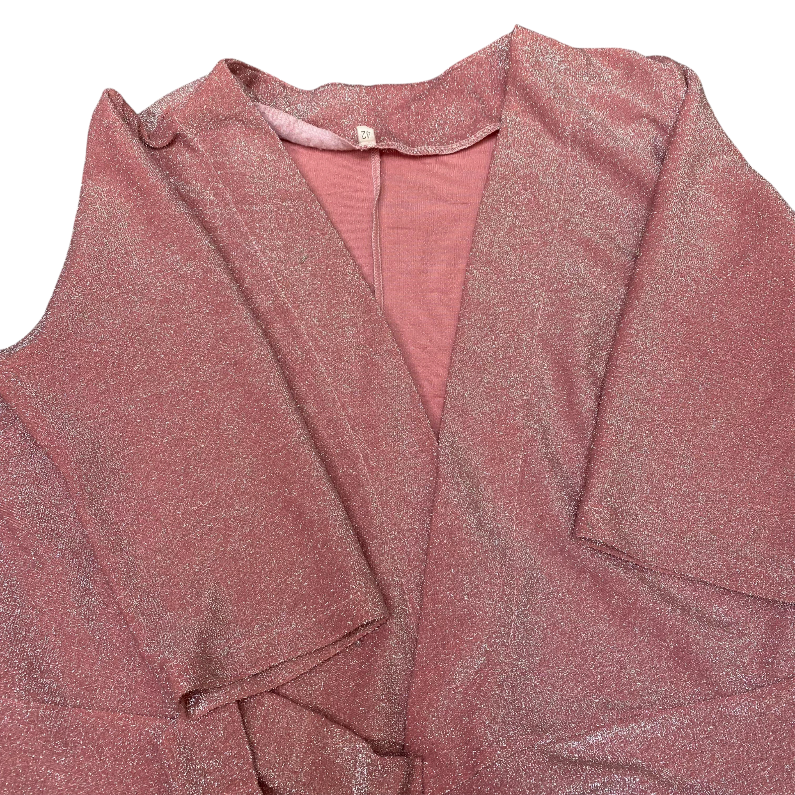 Womens Robe Womens S Pink Metallic Glitter Open Front Tie Waist Long Sleeve