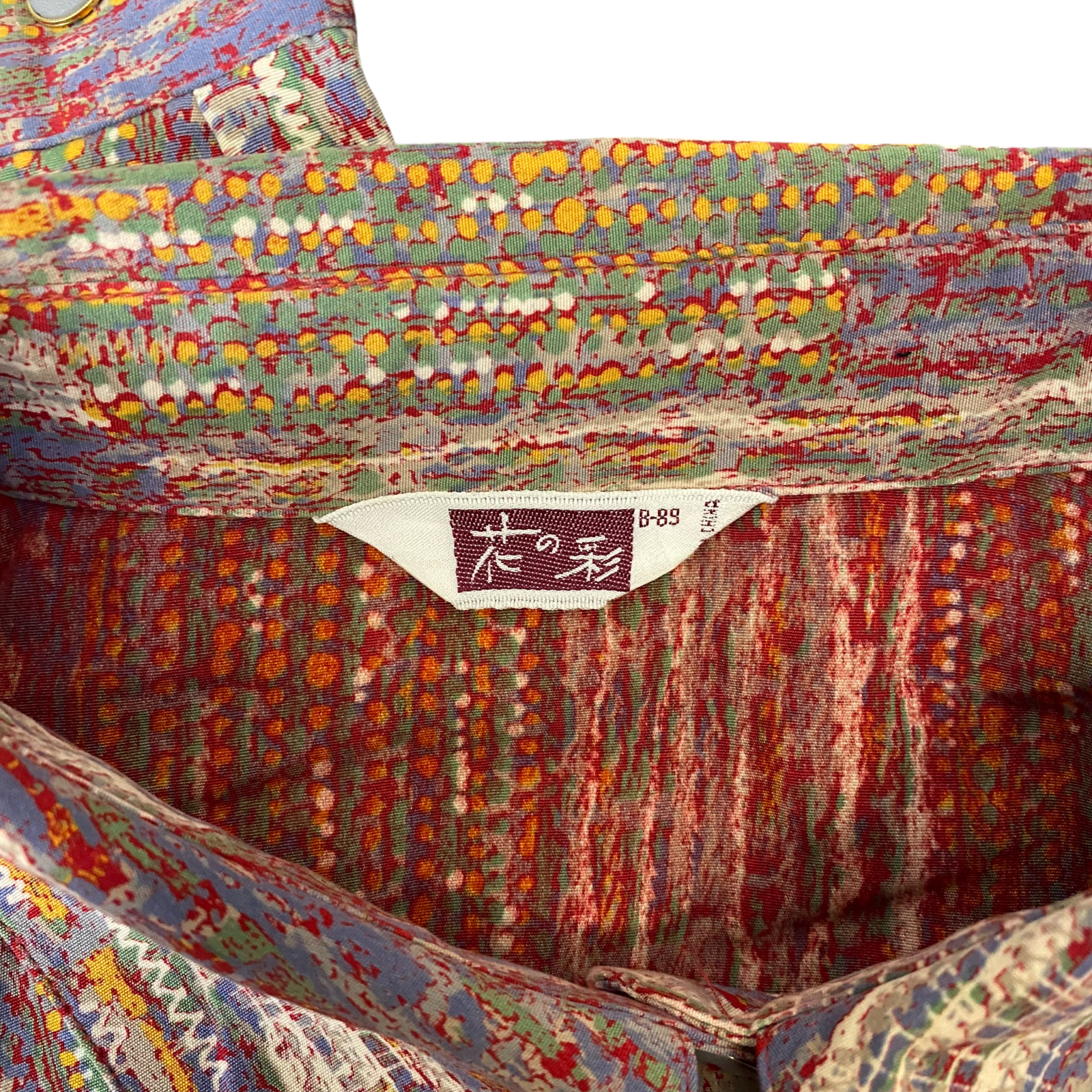 Womens Shirt Top L Multi Geometric Casual Long Sleeve Collared Button Down