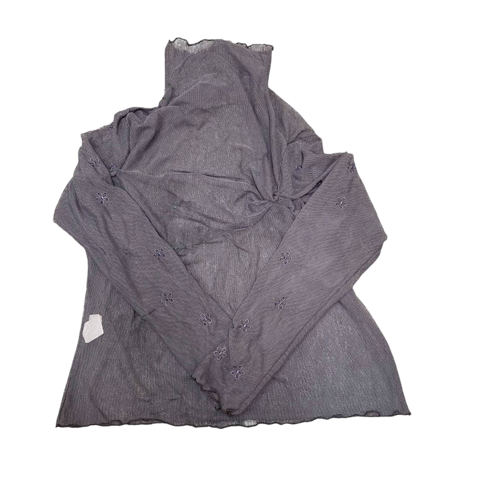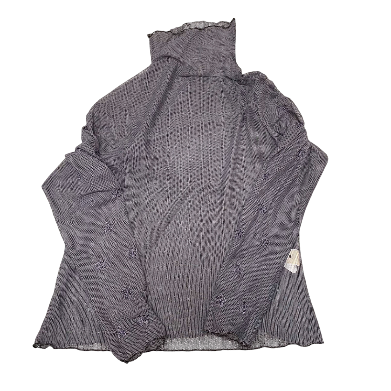 Womens Tunic Top S Black Sheer Embroidered Long Sleeve Turtle Neck Pullover