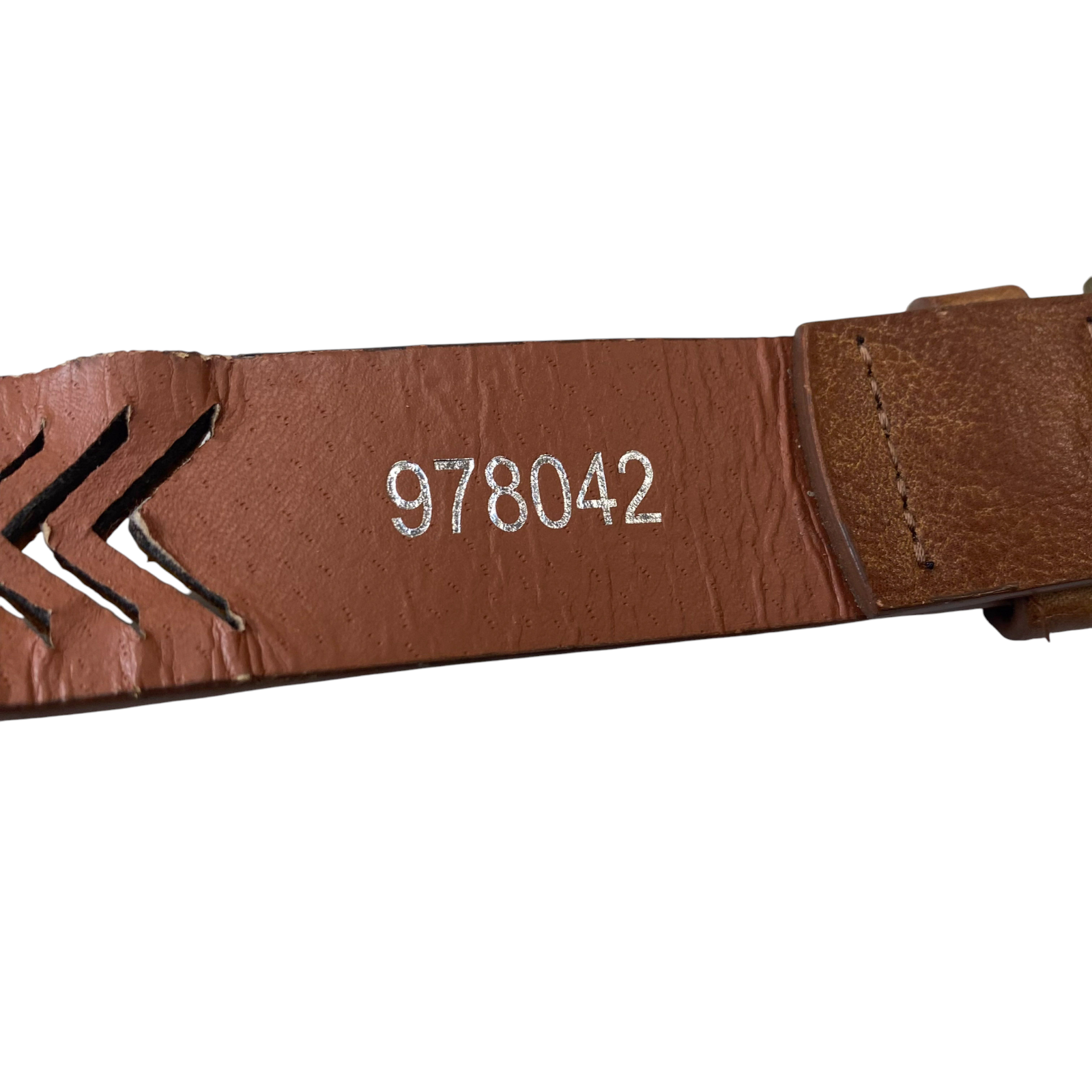 Women's Waist Belt Brown Leather Cutout Chevron Brass Pin Buckle Size 39.5 in