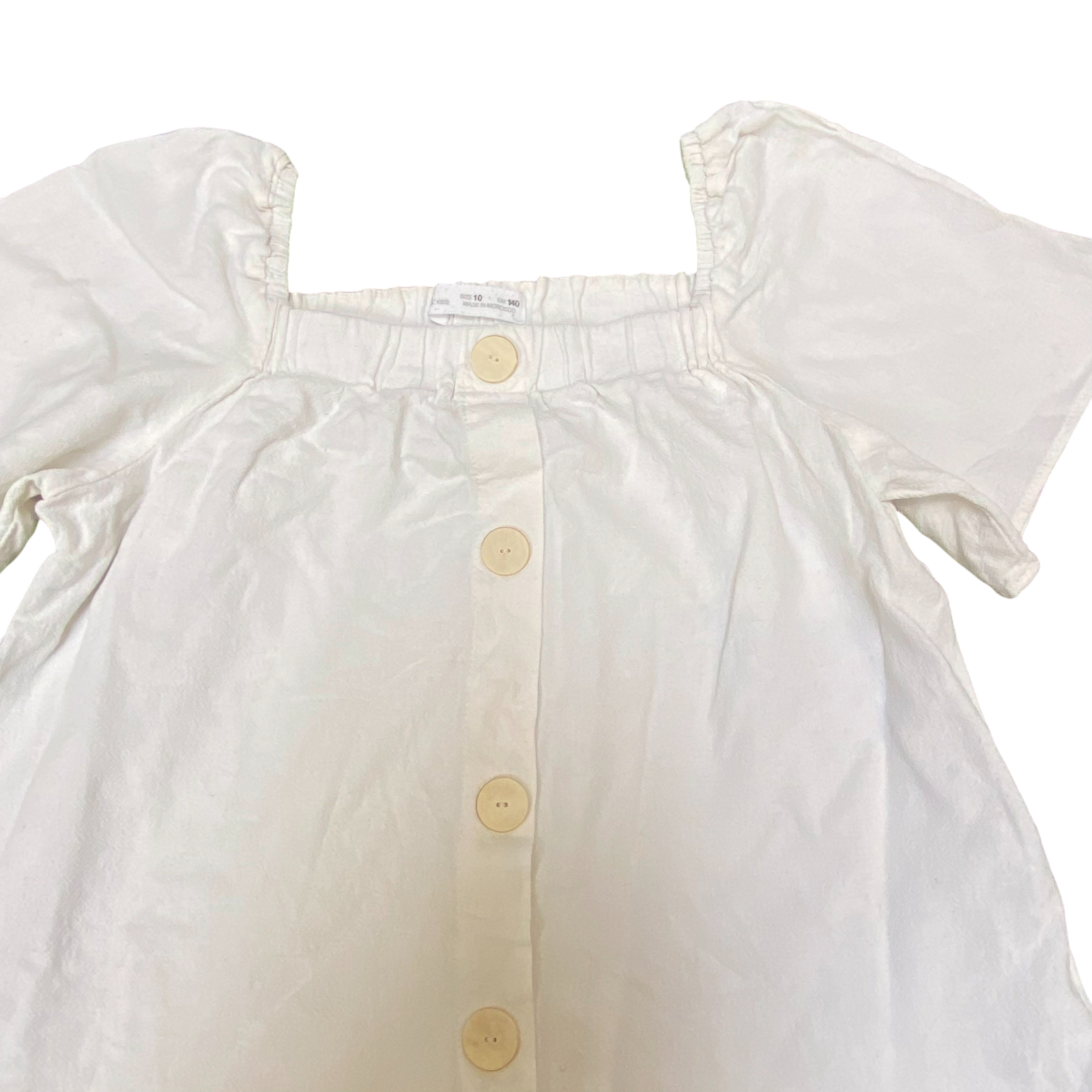 Zara Kids Blouse Top Girls S White Short Sleeve Square Neck Button Front Outdoor