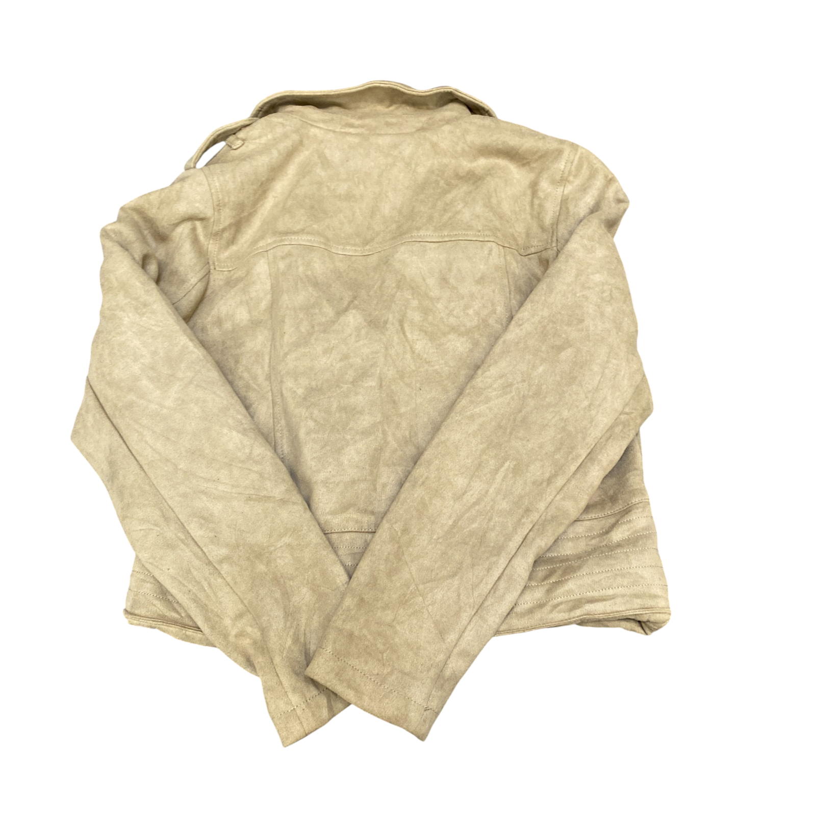 Zebra Suede Leather Motorcycle Jacket Women M Beige Notch Lapel Asymmetrical Zip
